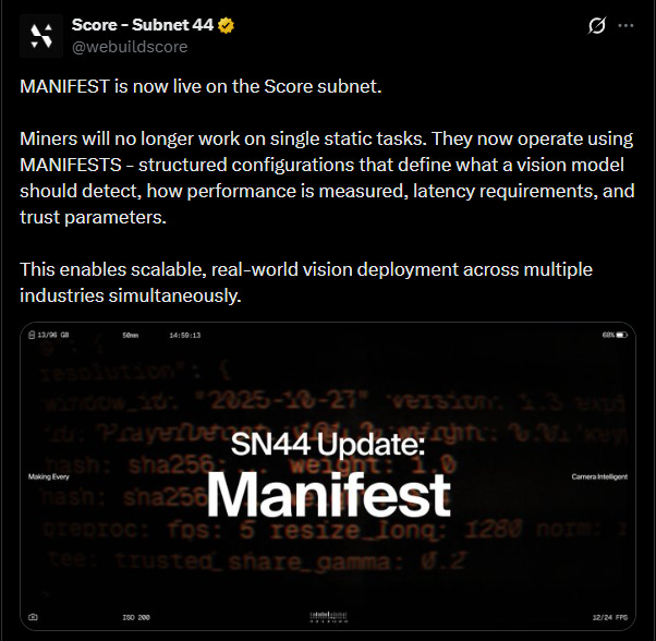 In February 2026, SCORE shipped MANIFEST, a mechanism upgrade that moves from static tasks to configurable production-grade specifications.