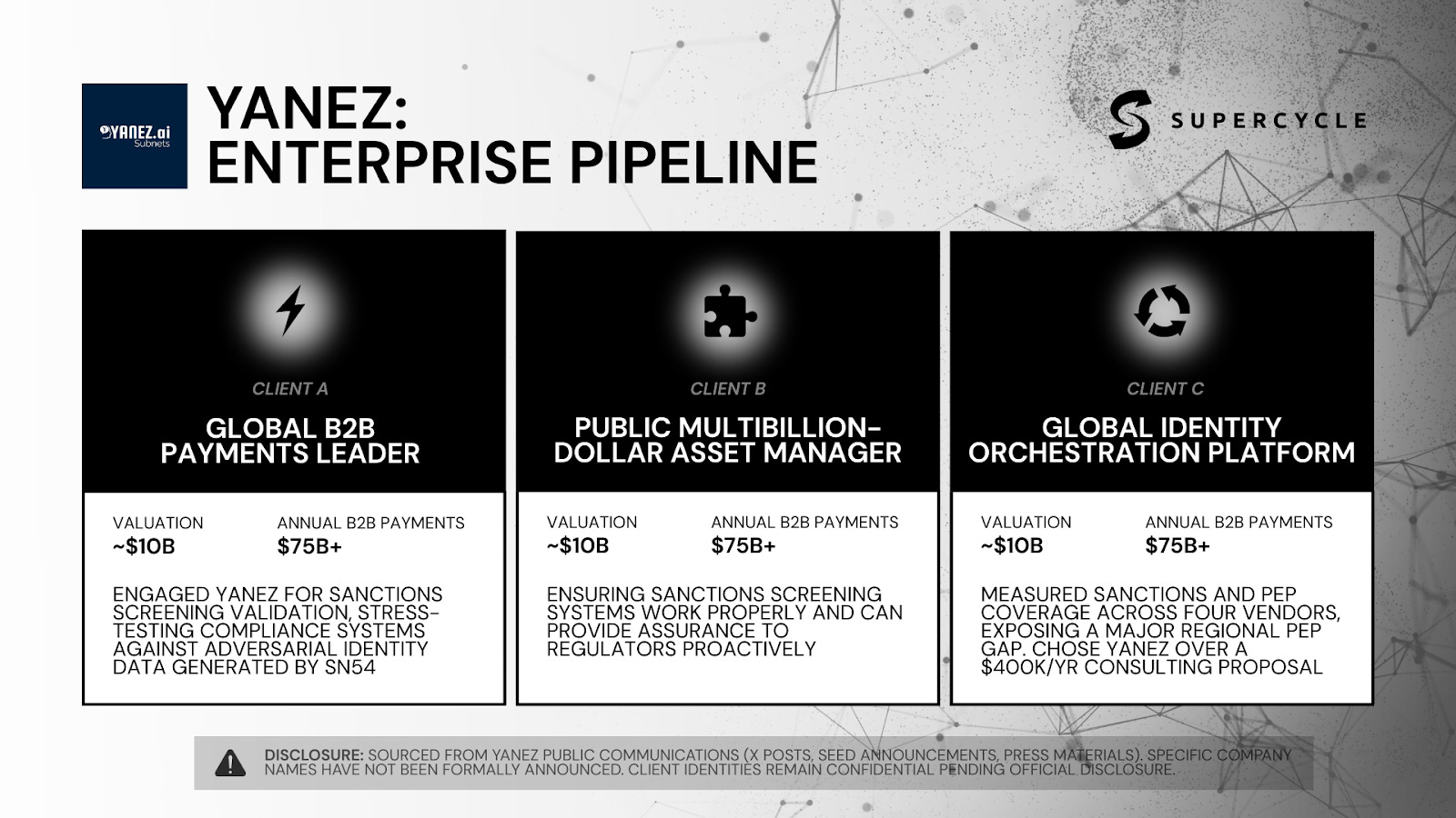 Most Bittensor subnets are science experiments. Yanez is selling to compliance teams at banks.
